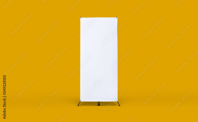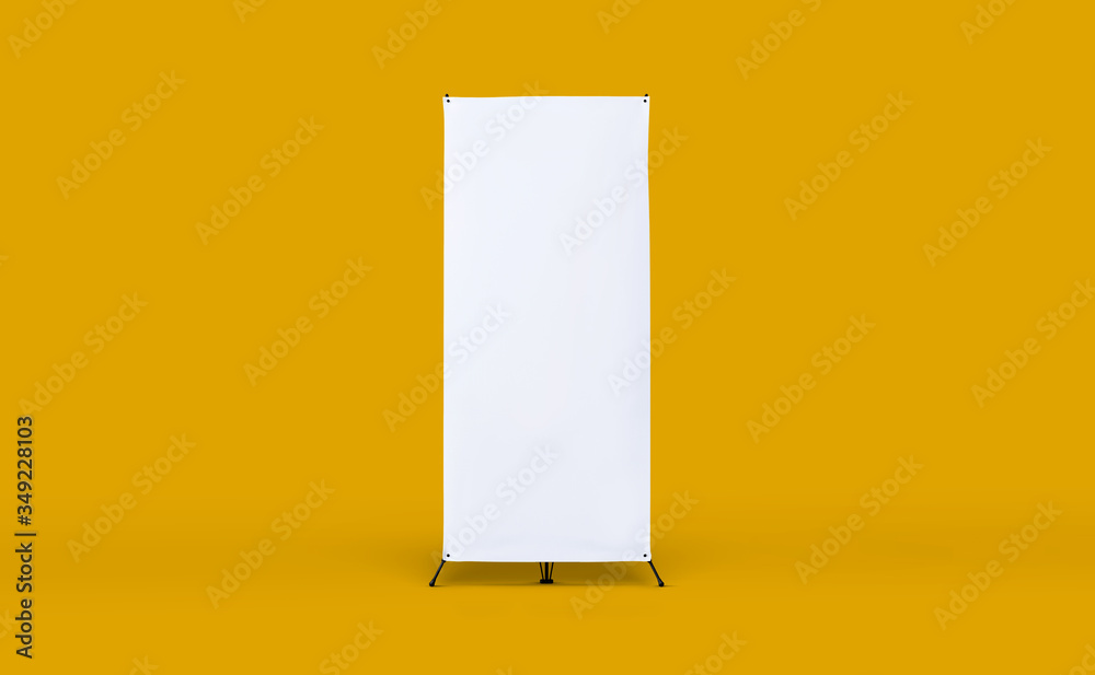 X-stand banner for training or promotional presentation. Blank template, empty banner display for preview. Mock up for your design.