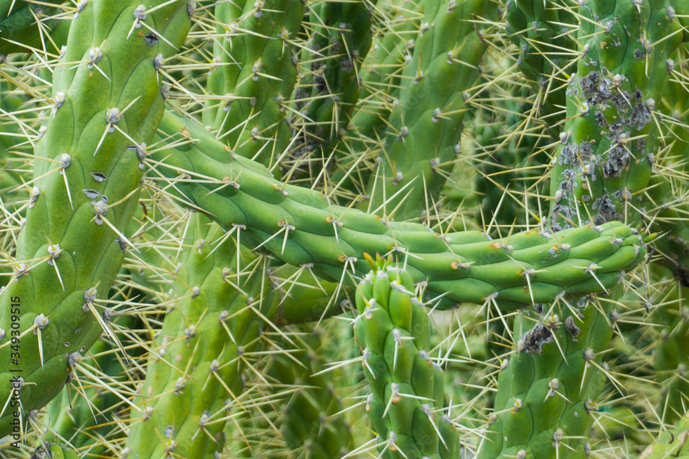 Close up of a cactus in nature. View of cactus details on sunny summer day.