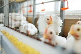 broiler chickens in cages on the background of a poultry farm and mixed feed