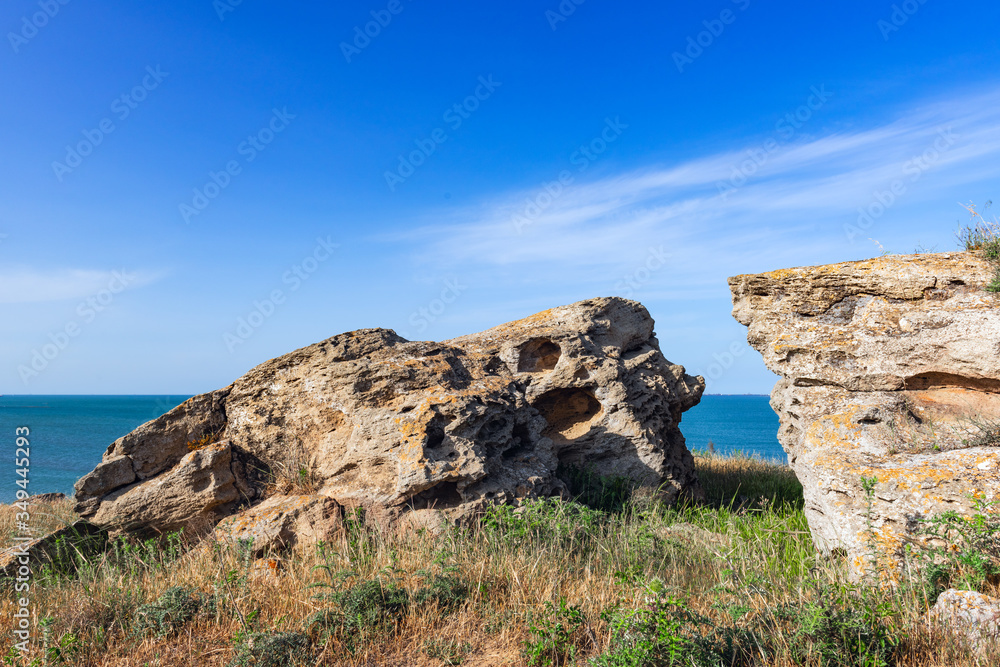 Huge rock fragment on the sea coast