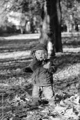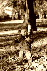 Toddler playing in the park in autumn