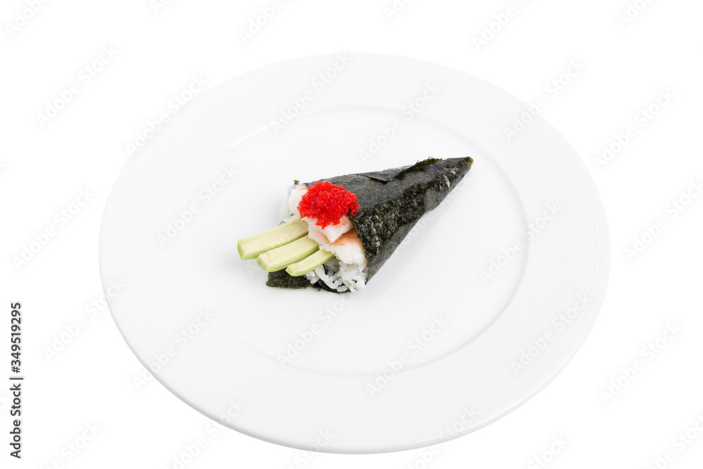 Temaki with crab meal and red caviar.