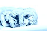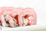Tuna sushi maki with eel and white cheese.