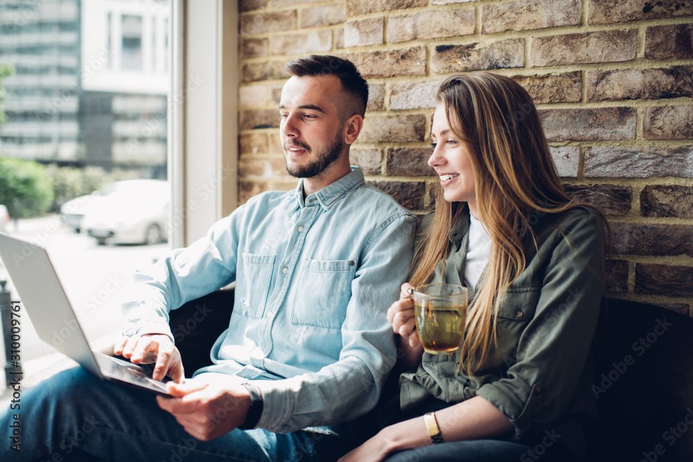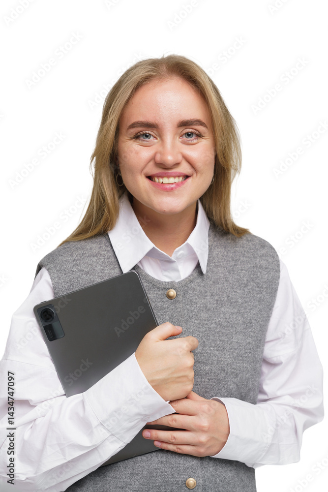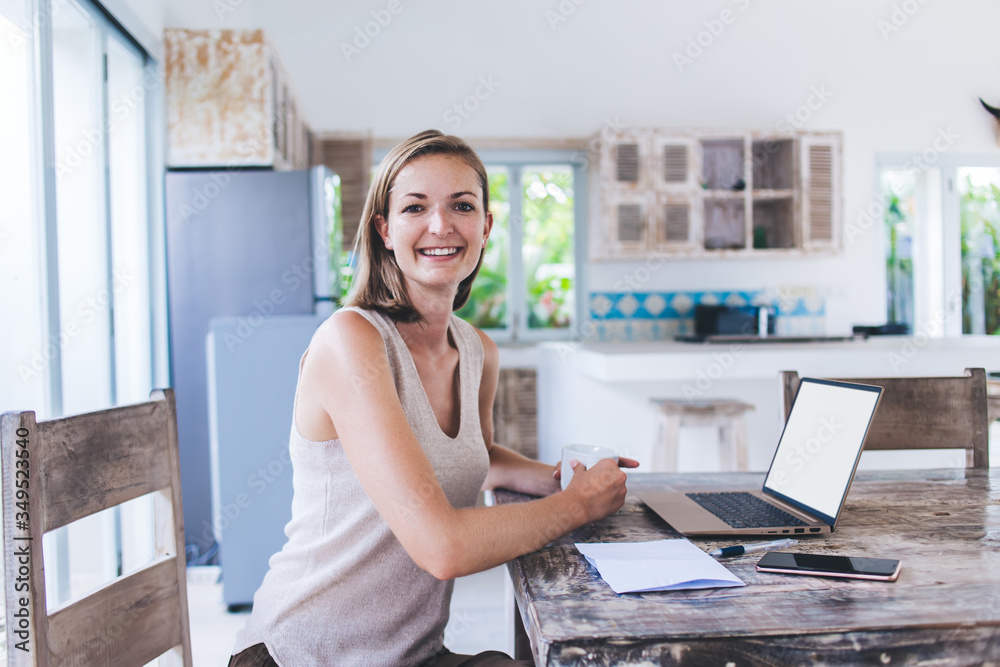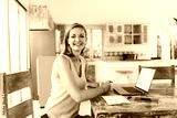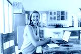 Smiling woman working on laptop