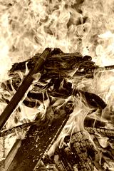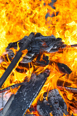 Burning wood, ember and logs on fire. Camp fire as background.