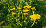Bright yellow dandelions blooming in spring