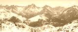 The magic and amazing panoramic view of freeze mountain range Alpes landscape scene from the highest nature peak panorama viewpoint. French Alps