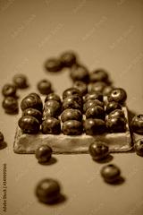 Sweet Homemade waffles with fresh raspberries, blueberries and cream on wooden table background