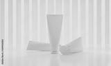 beauty medical skincare cosmetic lotion cream mockup bottle packaging product on background of science in healthcare pharmaceutical, 3d illustration rendering