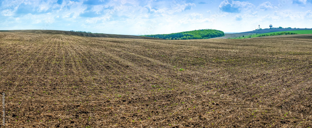 Agricultural field with growing sugar beets. Beetroot sprouts