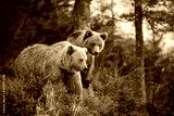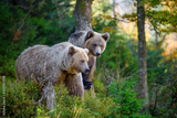 Two big brown bear in the forest. Dangerous animal in natural habitat. Wildlife scene