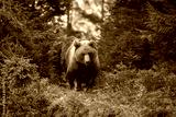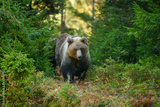 Big brown bear in the forest. Dangerous animal in natural habitat. Wildlife scene