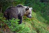Big brown bear in the forest. Dangerous animal in natural habitat. Wildlife scene