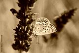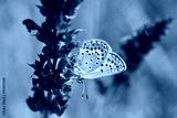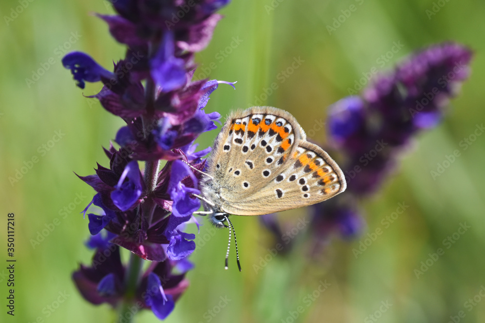 Silver-studded blue butterfly - Plebejus argus. Little blue butterfly on wild flower
