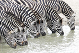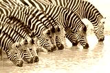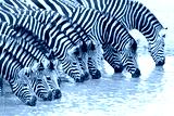 Herd of Zebra drinking water from a river in Kruger Park South Africa