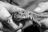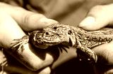 Lizard in human hands. reptile macro photography