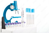 Test tube with a positive COVID-19 test on a white background