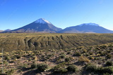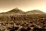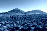 The panorama of the Lincancabur volcano in the Atacama desert from the side of Chile