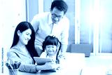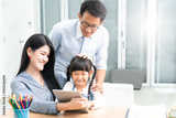 Distance learning online education and Homeschooling concept.Asian girl student video conference e-learning with teacher at home.A parents teaching daughter at home and does school homework.