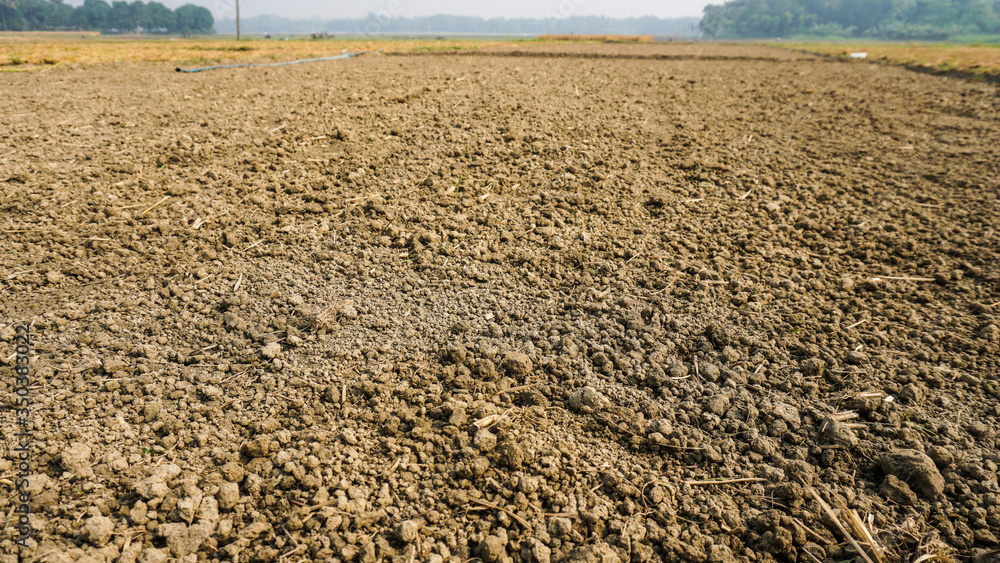 Soil - Texture (Sand, Silt, Clay Composition). Fertile loam soil suitable for planting, soil texture background.