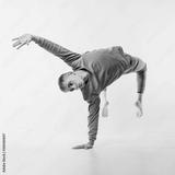 Male dancer in tracksuit and socks busting a move