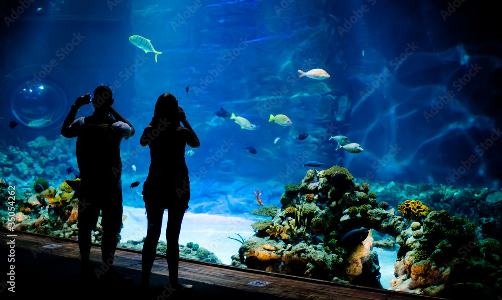 Real underwater background with fishes shoal
