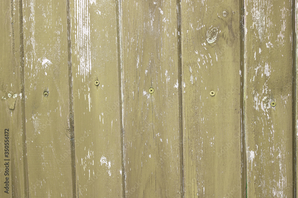 Vintage background of green painted and scattered old wooden boards