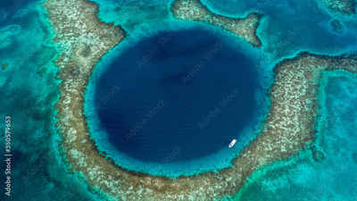 Aerial view of the Belize Blue Hole, UNESCO Heritage site