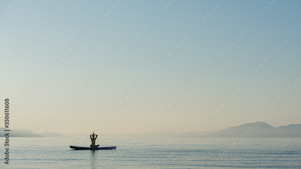 Young woman exercising on sup board