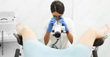 Colposcopy, a gynecologist examines the condition of the cervix, examines the epithelium using a colposcope. Gynecology, cervical disease