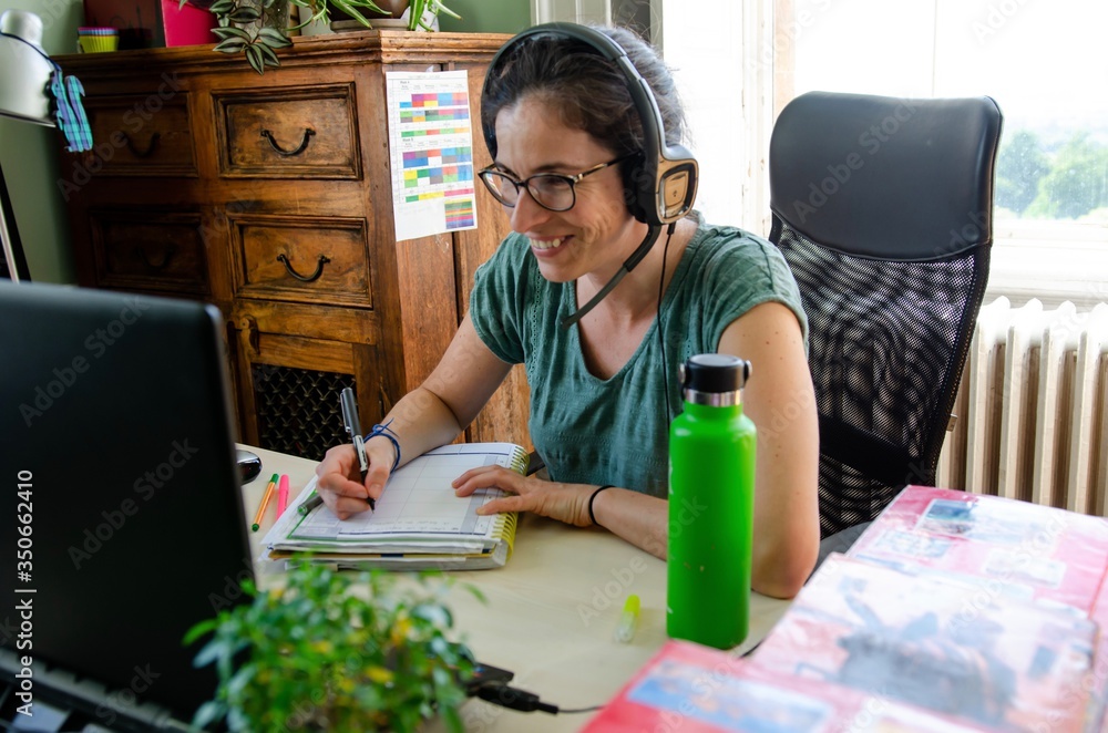 High school and secundary teacher of languages working from home during coronavirus quarantine