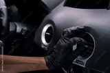 Technician inspected the air conditioning vents of the car. Maintenance and repair concept of the air conditioning and heating piping system. Workshop topic and car repairs. Automobile dashboard.