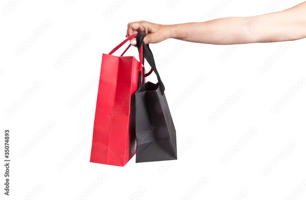 una mano sosteniendo bolsas de compras