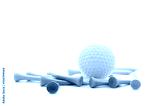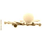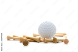 Golf ball and tee on white background.