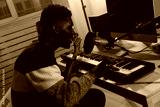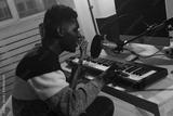 African american professional musician recording synthesizer in digital studio at home, music production technology concept.