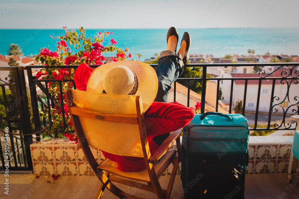 young woman tourist relax on scenic balcony terrace
