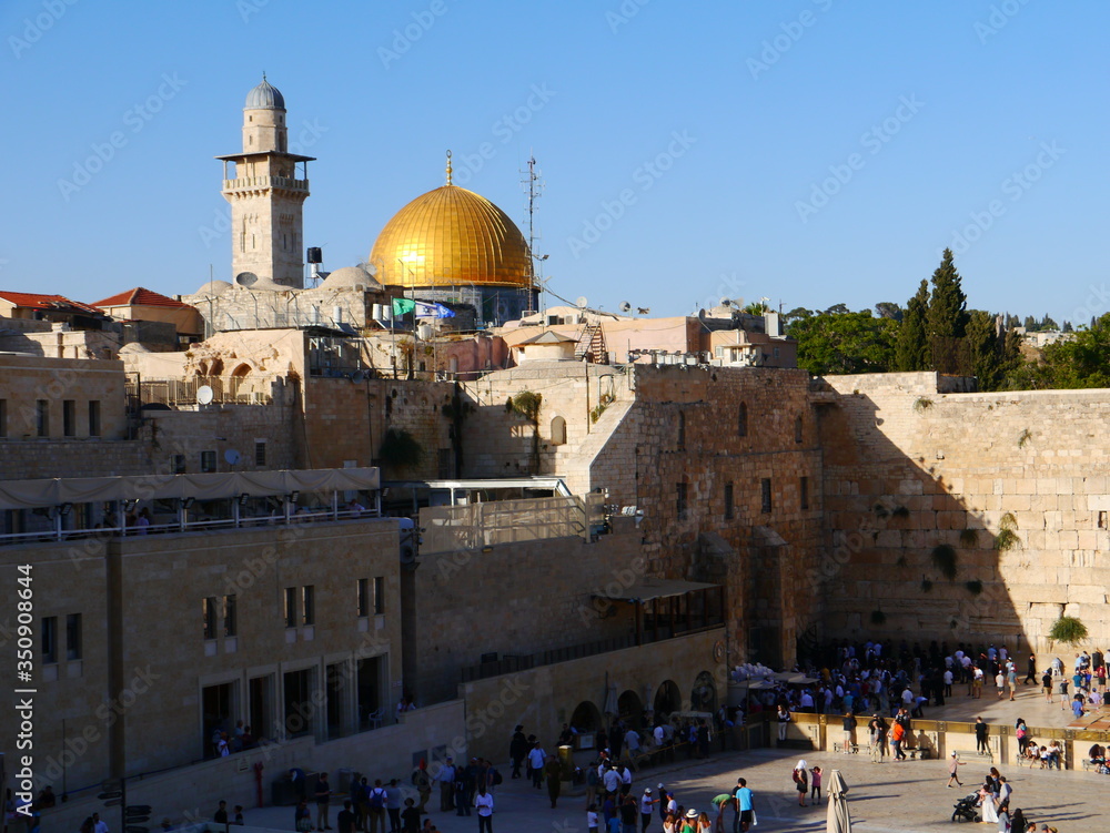 panoramic view over the famous Wailing Wall to Al-Aqsa Mosque on a sunny day, Israel, Near East
