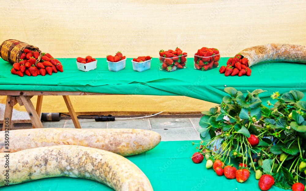 Fresh strawberry composition on table reflex
