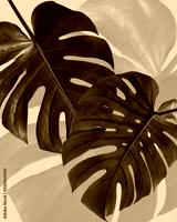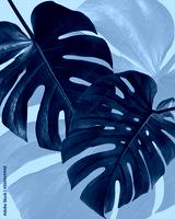 tropical monstera leaves nature frame on blue background, nature flat lay concept
