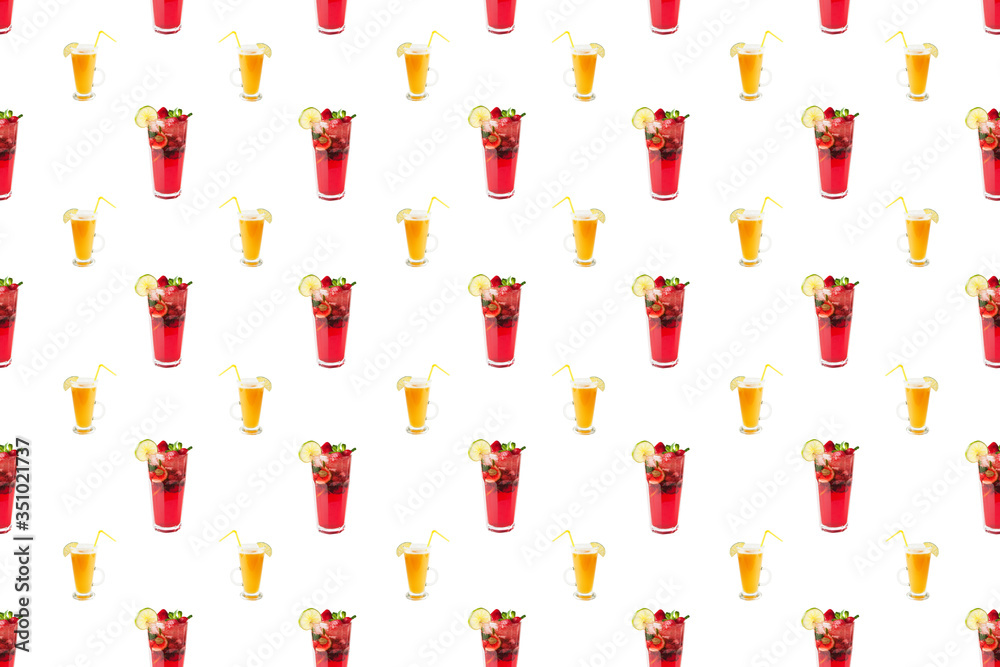 Seamless pattern with tropical alcohol cocktails. Beverages and drinks bar, restaurant, isolated white background