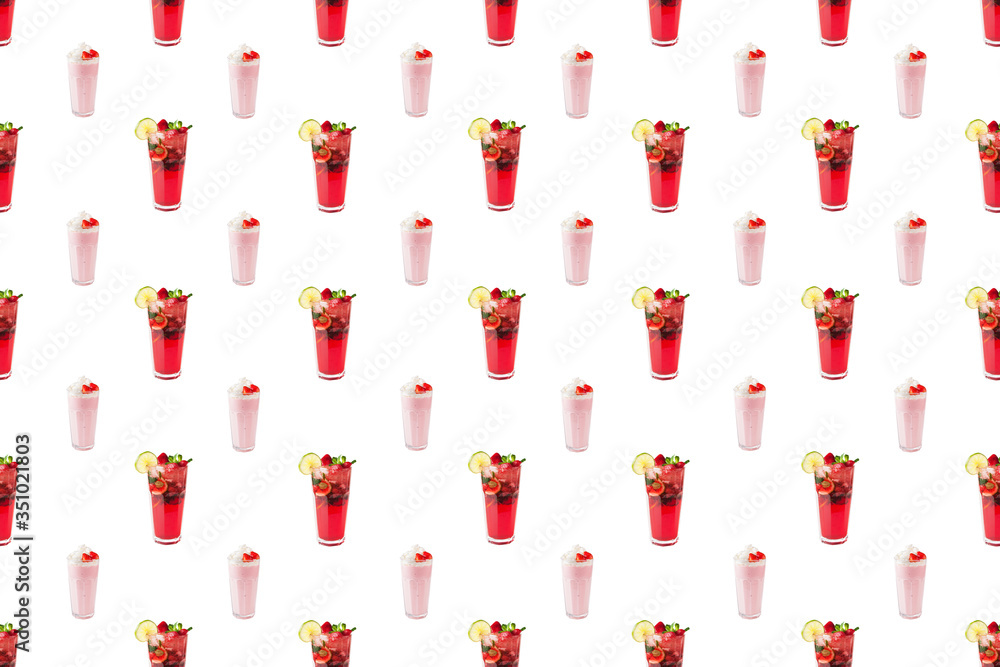 cute lovely seamless pattern background illustration with strawberry smoothies