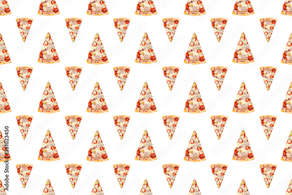 Doodle pizza seamless pattern background. Fast food seamless pattern.