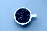 Taza con granos de café en el centro