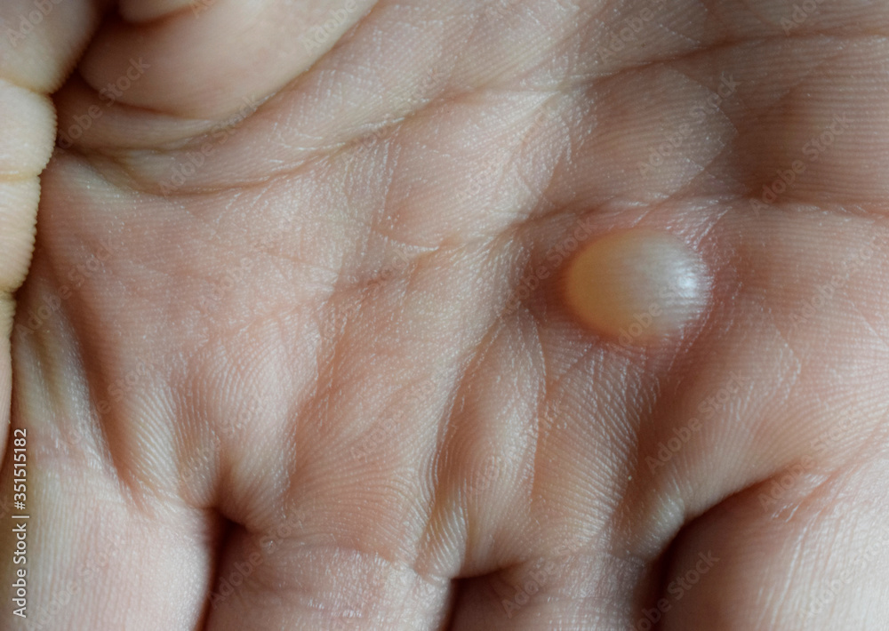 Water blister on hand from hot water.