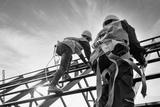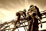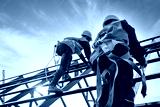 Safety body construction, Working at height equipment. Fall arrestor device for worker with hooks for safety body harness on the roof structure