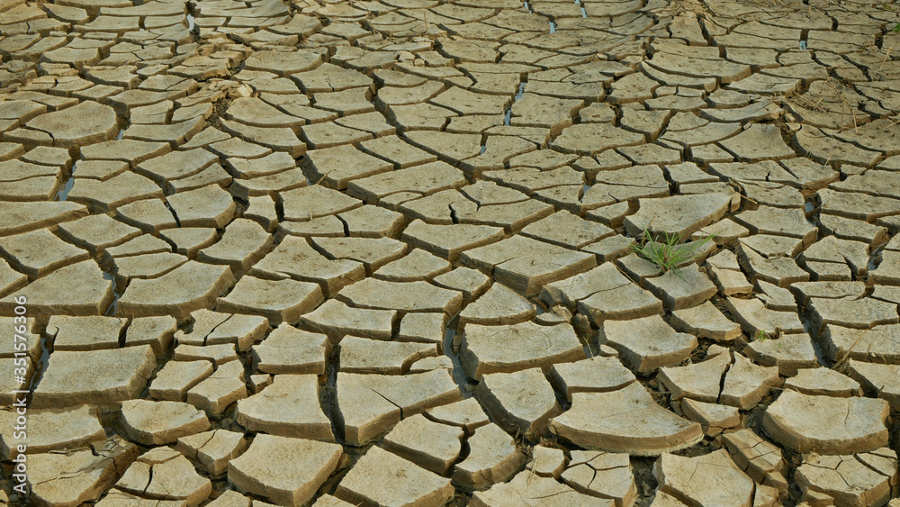 Drought cracked pond wetland, swamp very drying up the soil crust earth climate change, environmental disaster and earth cracks very, death for plants and animals, soil dry degradation