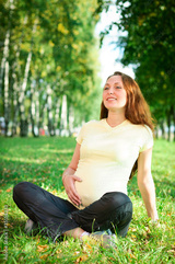 Beautiful pregnant woman relaxing in the park