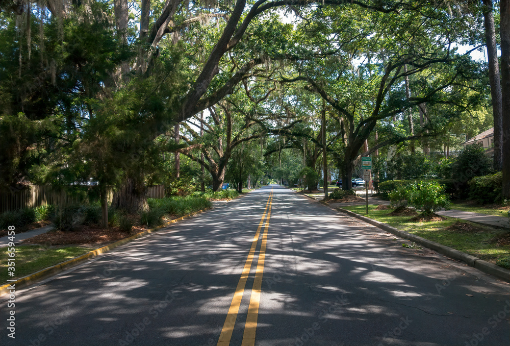 Tree lined street, Slater Street, Valdosta, Georgia, USA