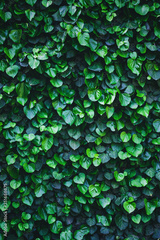 Abstract ivy green wall surface for decoration design. Natural background texture. Spring Summer Floral wallpaper. Interior vertical garden. Urban jungle indoor gardening.