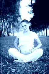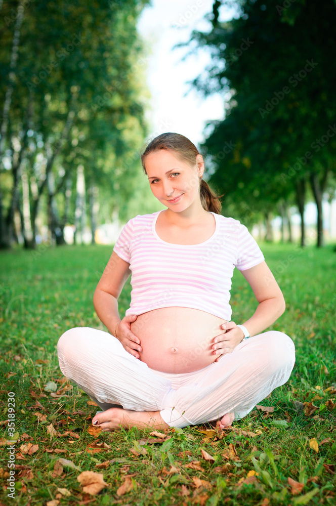 Beautiful pregnant woman relaxing in the park